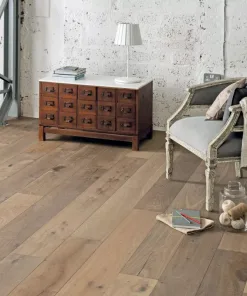 Extra wide engineered oak. One of the widest oak planks available from our London warehouse. Specially constructed on a multiply base to support this wide oak board. This floor has been chosen to show a pleasant contrast between natural knotting and some prime grade timber. Nice colour defined knots and natural surface appearance – more knotting and character marks than the classic grade.